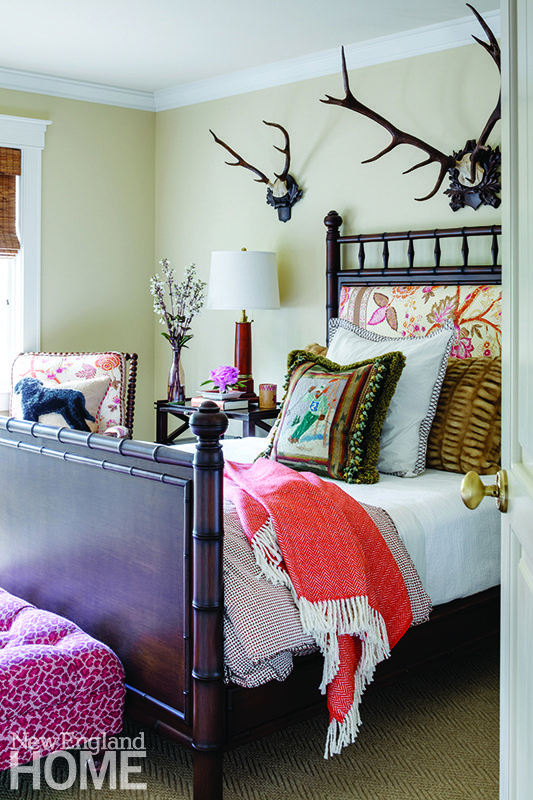 Thebault and the wife both love special furnishings, from antiques to modern pieces, and wanted each space to have a unique personality. “We didn’t want it to read too lodge-y,” the designer says. She established a traditional style but with a subtle nod to current trends, outfitting the rooms with antique Iranian Heriz rugs, animal prints, and classic furniture. “It was very important to us that the house wouldn’t feel dated in twenty years,” she says. “It’s classic style to stand the test of time.”