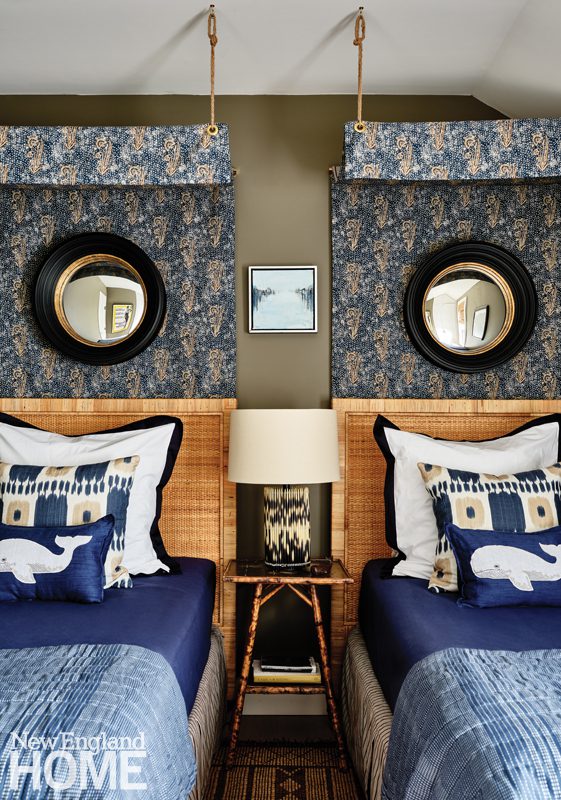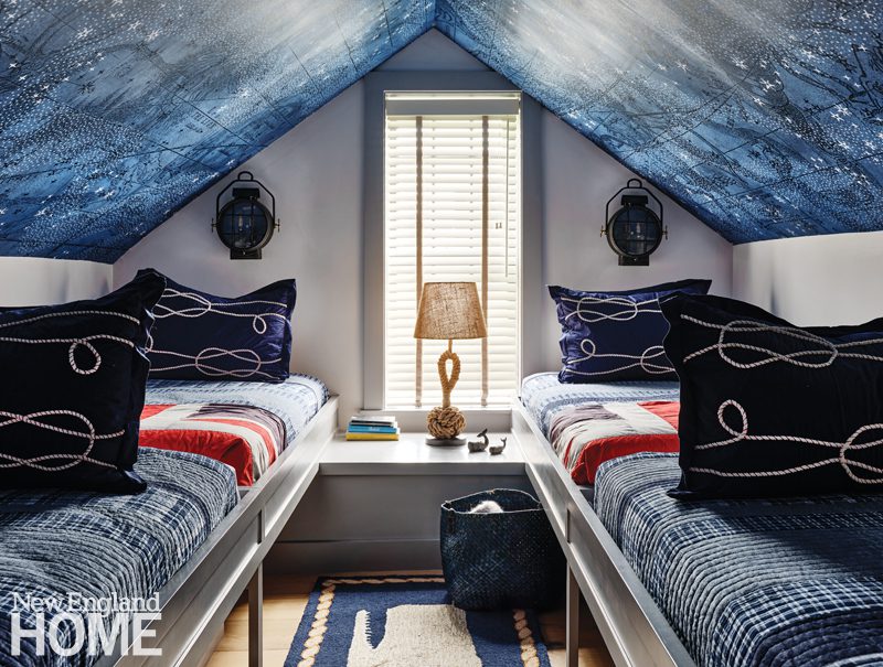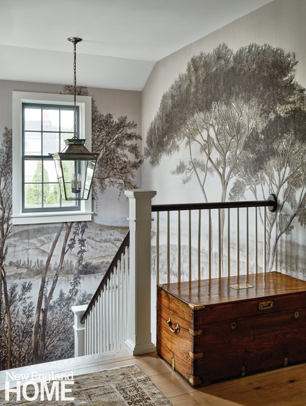 As for the decor, Paton let her imagination run wild when it came to the home’s previous seafaring occupants. The kitchen’s showstopping campaign-style breakfront houses everything the family needs to entertain. The campaign theme continues with the kitchen island’s counter stools and a chest that sits on the second-floor landing in the new part of the home.