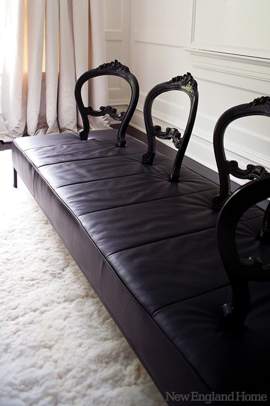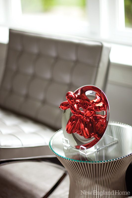 Lighting designer Amy Vitale of ALV Lighting Solutions in Stamford was brought in to assure that each piece would be visible and hold its own. “Much of the architectural lighting is meant to disappear and let the artwork glow,” says Vitale. “For example, in the living room, a low-voltage cable system with halogen lighting spans the room like a trapeze, but it’s hardly visible.”