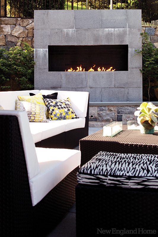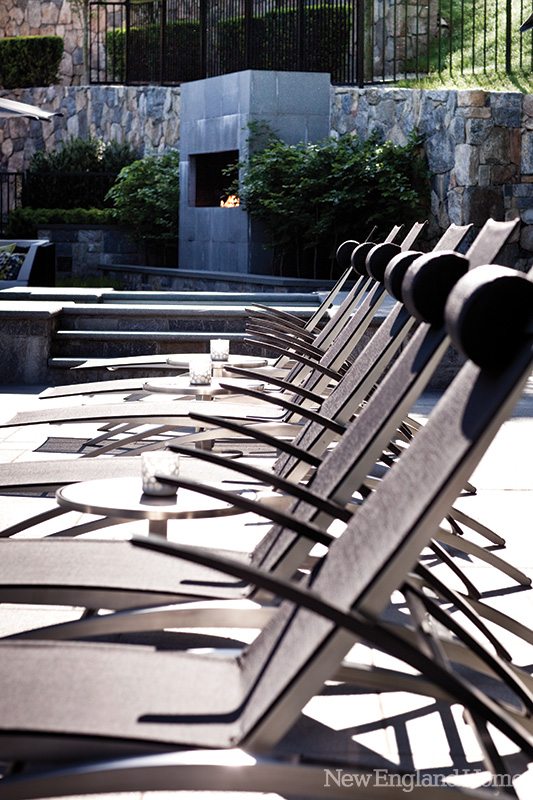 “We strove for a clean modern aesthetic with the choice of plantings and materials,” says James Doyle, principal of Doyle Herman Design Associates in Greenwich. “The plantings are linear with taller fastigiate [narrowing as they rise] columnar hornbeam trees, and we have a small palette of plants that are textural and sheared. We also used steel edging and gravel for a clean, modern look.”