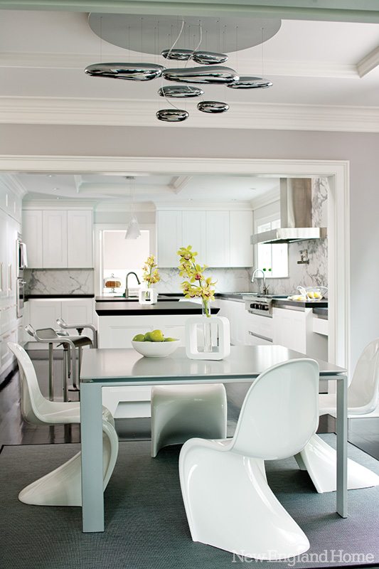 Vitale credits Adriana with picking Artemide’s Mercury ceiling lamp to light the kitchen’s breakfast table. “I didn’t think it was going to work, and it looks spectacular,” she says.