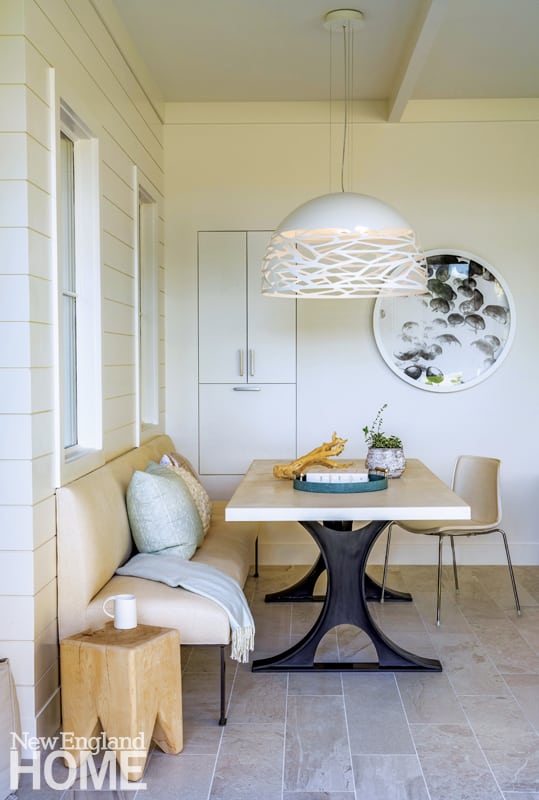 Palumbo and her clients opted for a few unexpected materials, including stone and tile floors instead of classic hardwood. “The clients are European so it was a familiar concept for them, but far less conventional in New England,” Palumbo says.