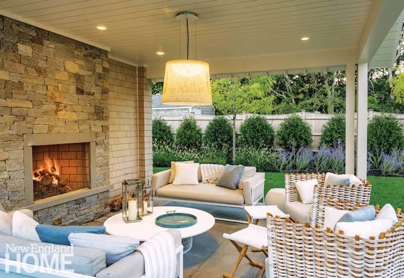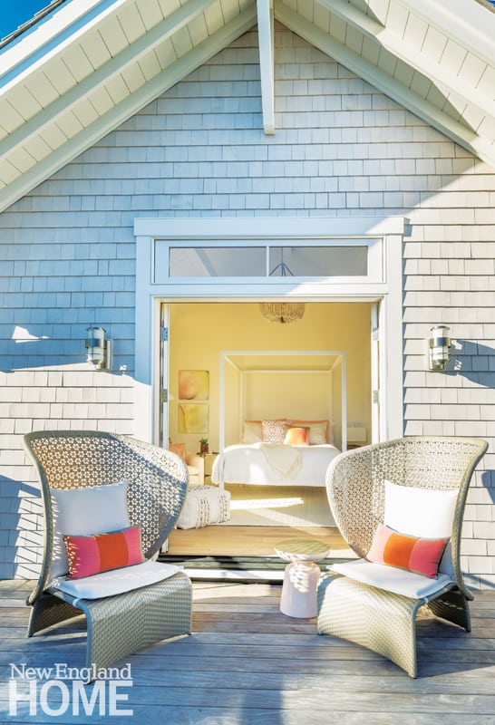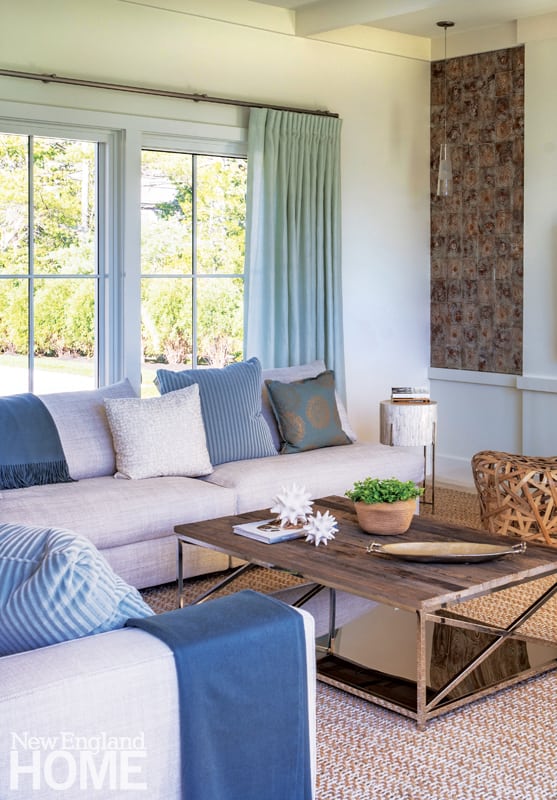 They’d never built from scratch, so they called interior designer Jennifer Palumbo, with whom they’d collaborated three times before. (They’re now in the middle of a fifth project, a winter home in Stowe, Vermont.) In turn, Palumbo recommended Jim Cappuccino and Erin Levin of Hutker Architects, and landscape architect Kris Horiuchi of Horiuchi Solien, both based in Falmouth. With builders Kendall and Welch Construction in Barnstable, and with guidance from the wife, who was deeply engaged in the process, they developed a plan for a fresh, sun-kissed new summer home.