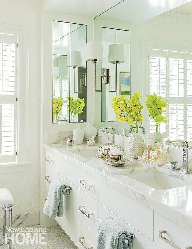 While Rosenfeld worked to create exactly the interior Lipton dreamed of, architect Lisa Abeles reconfigured the master bedroom, bath, and dressing room, continuing renovation work she had done for the home’s previous owners a few years earlier, when she updated the kitchen and family room. Now, thanks to the master-suite overhaul, a series of Palladian windows that had been broken up by a wall installed in the 1970s are reunited, enhancing the gracious feeling of the space and taking better advantage of the views out to the home’s beautiful property.
