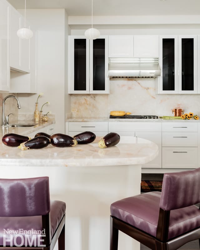 Leslie Fine, whose eponymous interior design firm is based in the Back Bay, wouldn’t let that happen. She transformed the brand-new 2,100-square-foot white box into a contemporary and plush oasis, merging function, comfort, and beauty—all while letting the out-of-doors do the most talking. The trick was to “stay away from heavy pieces of furniture that would take your eye away,” she says. “Now you can almost see through the furniture to the views.”