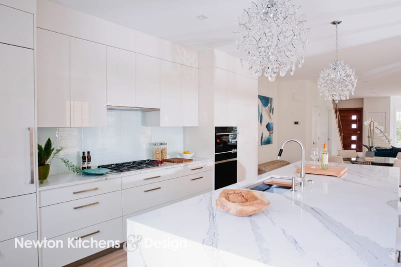 Newton Kitchens & Design is well known for its luxurious finishes such as zinc- or leather-wrapped cabinets, exotic-wood veneers, and bespoke details like hammered-nail heads. When you have a larger budget, these finishes are an incredible way to add the “wow factor” to your kitchen and create a space that showcases your unique style. “However, when the budget is more restrained, pass on the extraordinary and opt for a more classic finish such as painted cabinets or a stained wood.