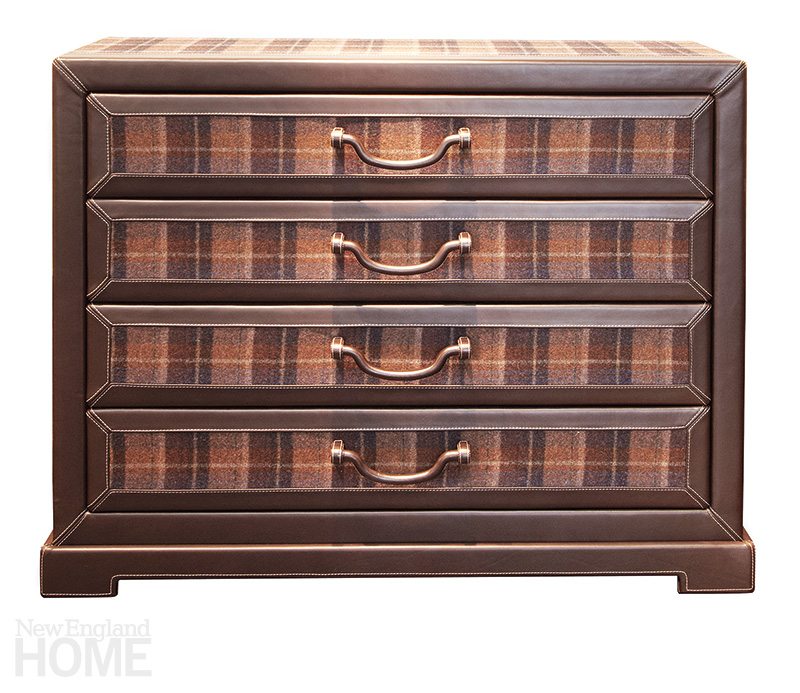 Promemoria has long been synonymous with fine craftsmanship, and the Future Voyager four-drawer chest is the perfect example with its bronze hardware, chocolate-brown leather detailing, and ecru stitching. The interiors of the drawers are stained oak with leather mat inserts. 46″W × 35″H × 20″D. $16,050. Showroom, Boston, (617) 482-4805, showroomboston.com