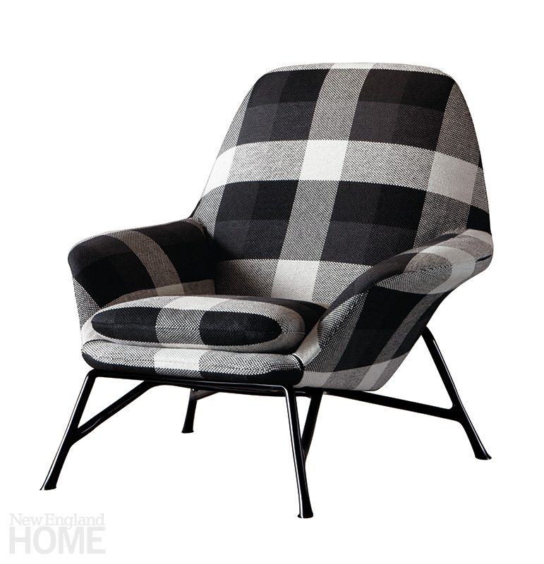 The strong, clean-lined Prince chair in black-and-white plaid by Rodolfo Dordoni for Minotti has fully removable covers, a down-filled foam-core cushion, and a die-cast aluminum base. 35″W × 35″H × 34¼″D. $6,615. The Morson Collection, Boston, (617) 482-2335, themorsoncollection.com