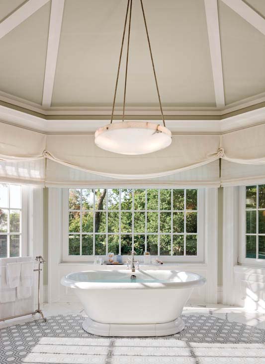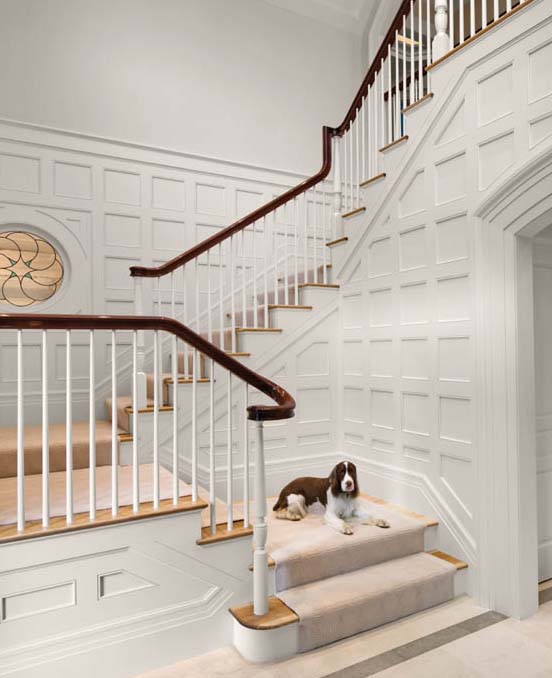 The main body of the house is also an exercise in symmetry, with a large central gable flanked by two turrets. “I also varied the roofline to break down the scale of the house and make it more residential as opposed to being big for big’s sake,” says Cullion.