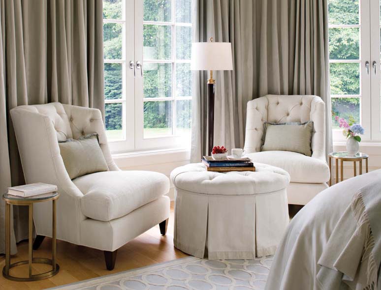 Because the owners wanted a clean, elegant feel to the design, Marcuvitz avoided jarring patterns. “I wanted these rooms to be restful to the eye,” she says. “I get interest by using sculptural shapes in the furniture selection.”