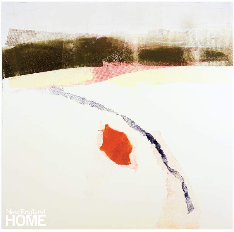 “Also, I am a self-confessed forager. I’ll walk the beaches, often near Provincetown and along the Cape, and come back with an assortment of dried strands of seaweed or pieces of yarn or rope that appeal to me. I might ink them up and incorporate them into a print or just be inspired by their colors.”