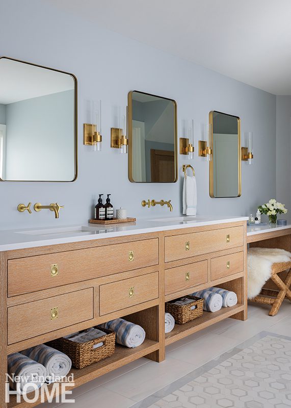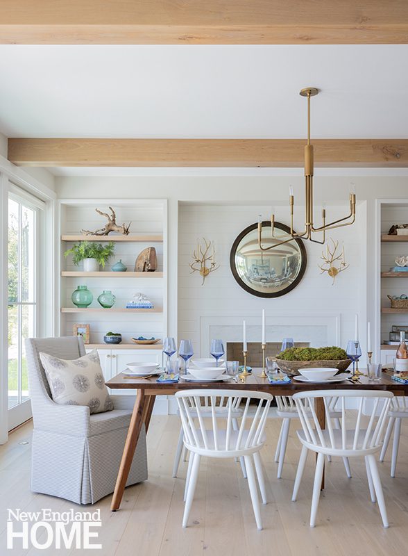 With the able team of Erin Gates Design and Hutker Architects by their side, the couple embarked on a gut renovation, reimagining the layout for today’s family—and future generations. The heart of the home is an open kitchen, dining room, and living room; three suites, two bedrooms, and a bunk room make the house guest-ready but also prep it to accommodate kids who will one day crave their own space. “This program speaks to how we are using homes in New England today,” notes architect Mark Hutker. “It works for most families as they mature.”