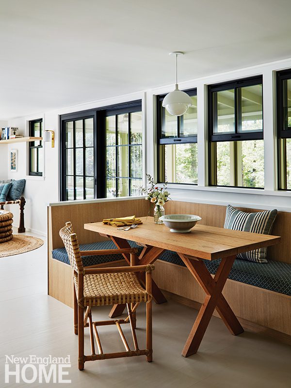 Above ground, says architect Doug Jack (who was with Maryann Thompson Architects at the time but has since opened his own Boston firm, Nidify Studio), the footprint and basic layout of the two-story house remained the same. That doesn’t mean he didn’t make big changes, however. The old cottage comprised smallish rooms wrapped in knotty-pine paneling and sporting small multipaned windows. “It had kind of a dark, cabin feeling,” Jack says.