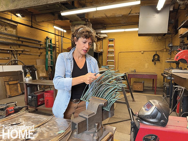 She was. After two years of grinding away at stainless steel at The Steel Yard, a maker space for metalworkers and other artists, she won a big public commission, turning a broken-off smokestack in Providence into a beautiful crowned column twined with ivy. This led to more commissions, big and small, public and private, and a move to Boston.