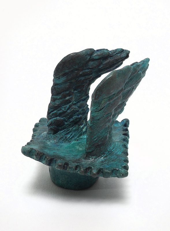 Stainless steel, which comes in big flat sheets, rods, and bars, lends itself more to boxy shapes, so to make organic forms like seagrass and kelp, she casts details like buds or fronds in bronze, which she incorporates into the steel. The result is something quite miraculous: hard, strong, impervious steel, seemingly floating or bending in the wind.