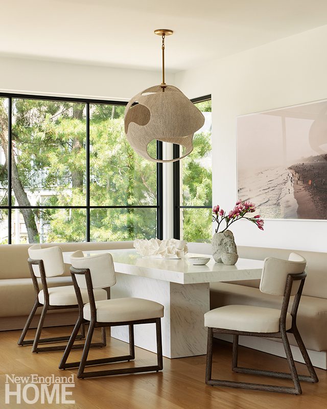 Halper and primary project architect Eliza Rubin collaborated on the complete overhaul. “We spent a lot of time detailing it to look like we didn’t do anything,” says Halper. A long-span structural approach enabled the team to reduce the number of visible first-floor walls and columns, while extra-large windows in unique configurations bolstered the airiness, added interest, and, of course, gave way to killer views. They also removed six street-facing doghouse dormers and repurposed that saved square footage to add a single large dormer at the back of the house.