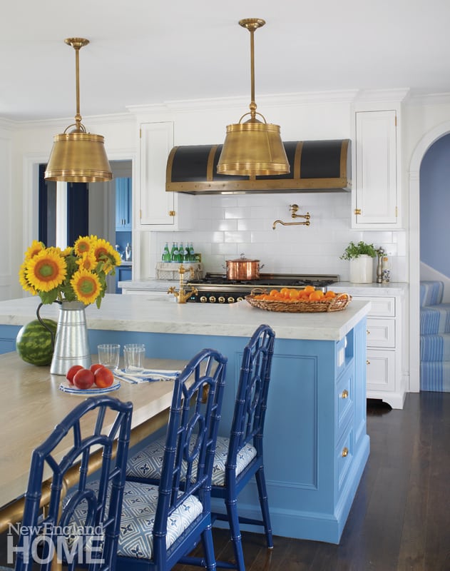Blue—in all its glorious shades from cornflower to navy—gives a New Canaan house its fresh, youthful feel.