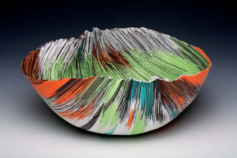 She sent images of the vessels to Barry Friedman, the owner of the gallery she works with in New York City. Friedman loved them and said he wanted to build a show around them, so much so that he sponsored the development of all the red-and-black pieces she created over the next year. Once again, the would-be dancer was leaping forward. “The show was called Shadows, and it was easily the best show I’ve ever done,” she says. “It referred to the shadows we all leave as we pass through our time on Earth and then move on. It was about that combination of darkness and brilliance that a life is all about. It was about pulling me out of darkness and into the light.”
