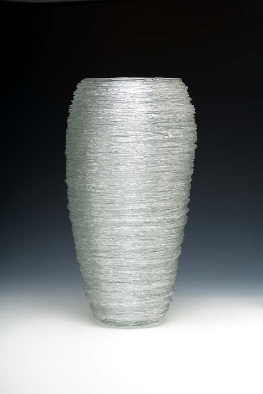 The dance world’s loss was the art world’s gain. The experience inspired her never to back off from a challenge again. And her early passion for grace in motion led her to invent a singular form of glass artistry she calls filet-de-verre. Zynsky takes thousands of multi-colored, cappellini-thin glass threads and arranges them in complex layers on a fiberglass board, a process she likens to painting or drawing. The threads are then thermally fused in a kiln. Zynsky then uses molds and her hands to squeeze and shape the hot glass into brilliant sinuous cylinders. Her work is in the permanent collections of more than seventy museums and public collections worldwide, including the Smithsonian, the Louvre and the Metropolitan Museum of Art. She was the first contemporary glass artist to have a piece commissioned by New York’s Museum of Modern Art. She also has a devoted coterie of private collectors.