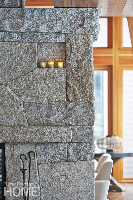 There’s no better example of the detail and collaboration that went into this home than the massive, four-sided granite fireplace that dominates the interior. Sisler, Gleysteen, and mason Matt Parisi combed through slag piles of abandoned granite at a local quarry in search of just the right shapes for the fireplace’s mantel, lintel, and hearthstone.