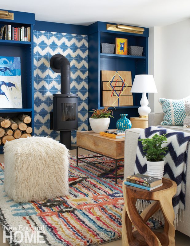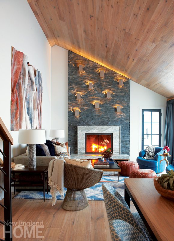 To do just that, Berchem and Goos enlisted the aid of designer Holly Hickey Moore, who practiced in Vermont at the time. “I visited the home and agreed with Kerry that the time-warp, 1980s look—white walls, Berber carpeting, knotty pine ceilings—had to go,” Moore says. We decided to aim for a timeless, eclectic design.”