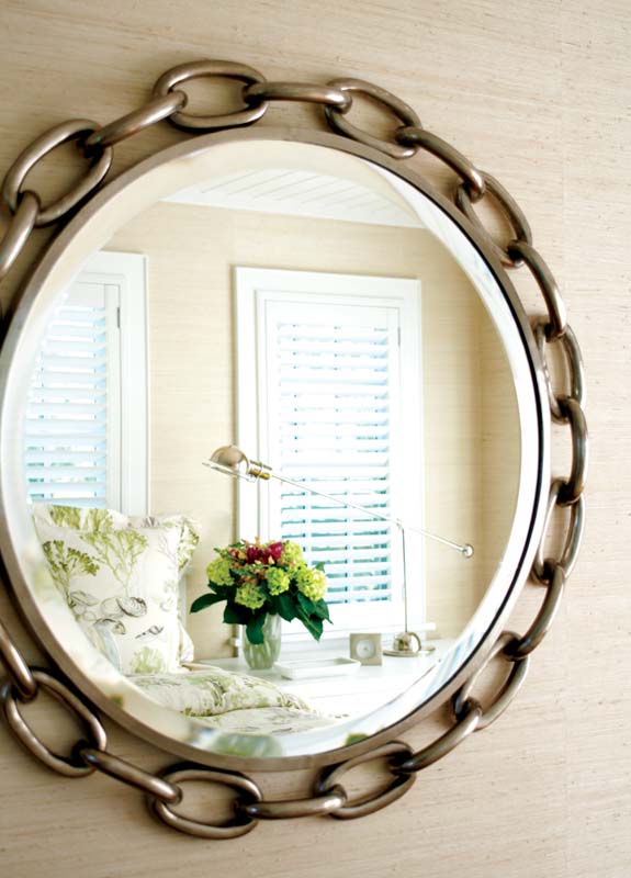 “Textures are a signature of mine,” explains Kathleen, pointing to the room’s thickly woven chairs, coarse sisal rug and beadboard cabinetry. “I tend to do less color and more texture because I like the artwork or the flowers someone might bring in—or even the clothes your guests are wearing—to be what shines.”