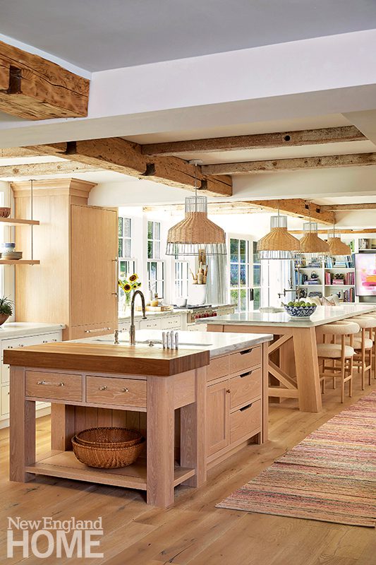 Manganello’s revamp two years ago, however, proved transformative. “The house is traditional,” she concedes. “But since I was spending the money to renovate it, I wanted it to be cleaner.” When she first moved in, she had opened up the front, creating a more graceful entry hall. Now, she gutted the Stevens addition and rerouted some stairs, yielding an expansive open floor plan anchored by the kitchen. “I entertain a lot, and this is where everyone ends up,” she says. “That’s why double islands were important.”