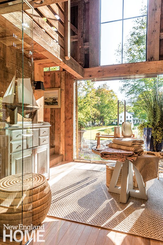 Today the livestock is gone. But so are the dark interiors dictated by eighteenth-century building methods, which local minister Tristram Gilman employed when he erected the original structure. With only a fireplace or woodstove, ceilings had to be low and windows small to prevent heat from escaping.