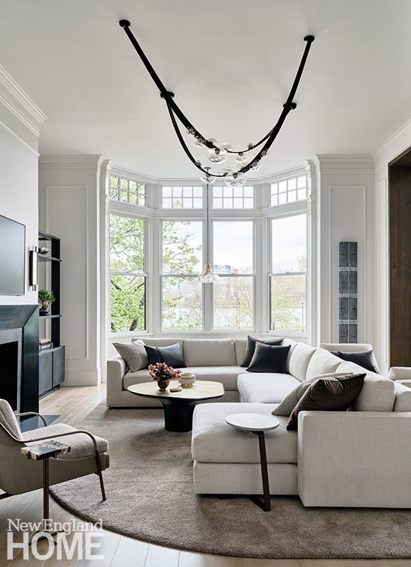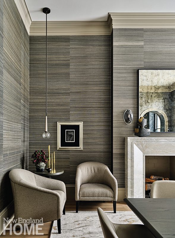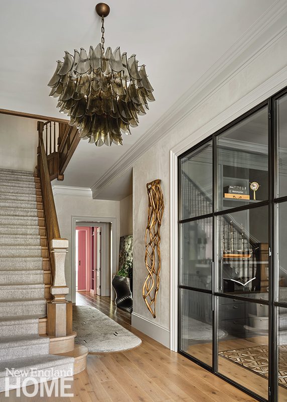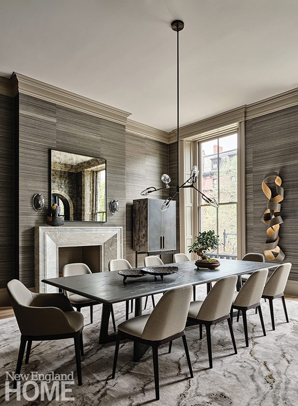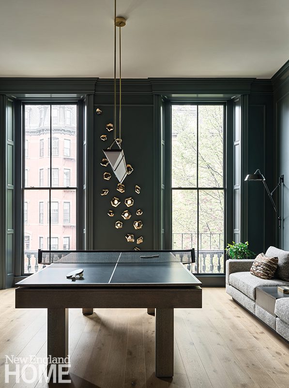 By the time an interior designer creates a third home for clients, she has usually figured out how to respond to their needs, lifestyle, and aesthetic. That certainly proved true for Nicole Hogarty as she curated the subtly statement-making decor of this expansive home, which occupies the first three floors of two combined 1890s brownstones in Boston’s Back Bay. Hogarty, however, had not only figured out the desires of her fun-loving clients—Sal and Sabrina Napoli and their two young-adult children—she’d internalized them.