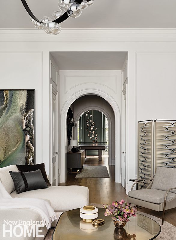The Napolis shared inspirational images of favorite hotels—Boston’s XV Beacon, several Four Seasons locations—as well as The ’Quin House, the private club on Commonwealth Avenue recently reimagined by designer Ken Fulk, where they’re members. Sabrina requested a formal dining room, and Sal wanted a pool room on the main living floor. But they didn’t offer much direction beyond that. “They knew we’d carry their voice through,” says Hogarty. “I cherish that level of trust.”