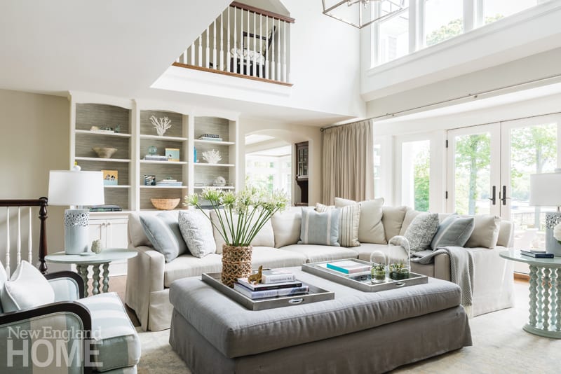 Having only recently remodeled, the two were determined to bring as much of their existing furniture and decor along with them as possible. At the same time, they asked Sterling to conceive a casual coastal design to complement the beautiful river views from the rear rooms of the new home. “We had a jumping-off point because we could take much of the previous house and move it over,” says Sterling. “A lot of the design palette had already been established, but I tried to introduce some new elements to create interest and make it feel like a fresh home for the owners.”
