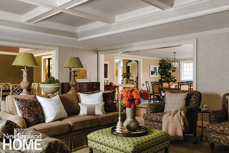 “Even some of the ceilings are wallpapered,” she admits, laughing. “That can make a room so much cozier and more relaxed than merely leaving ceilings plain.” Other ceilings were coffered to