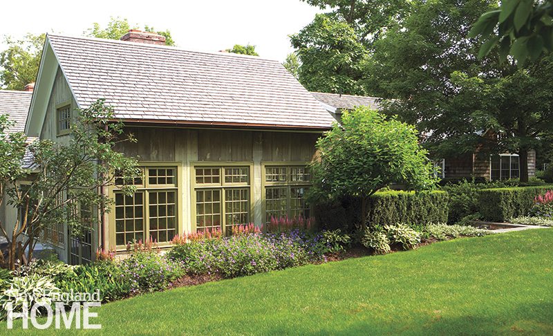 The family enjoys the home inside and out, year-round. Gardener Kyle Shay, who lives right around the corner, has been lovingly sprucing up the landscaping for the last three years. “I have always loved that piece of land, with its natural outcroppings and slopes,” says Shay. She has spearheaded everything from revamping the vegetable and wall gardens to giving the pool area a much-needed facelift. “There are always ongoing projects,” she says.