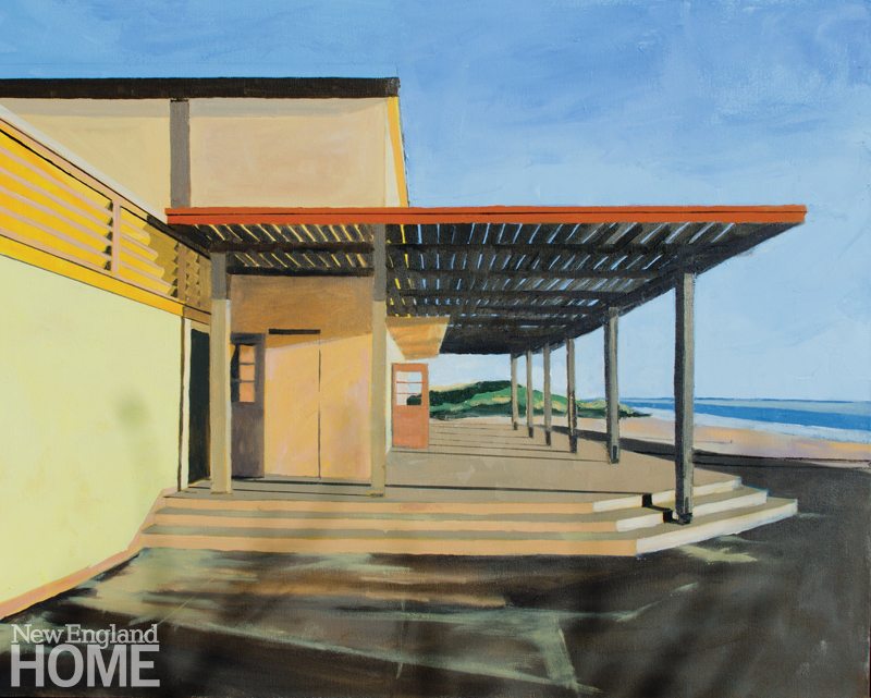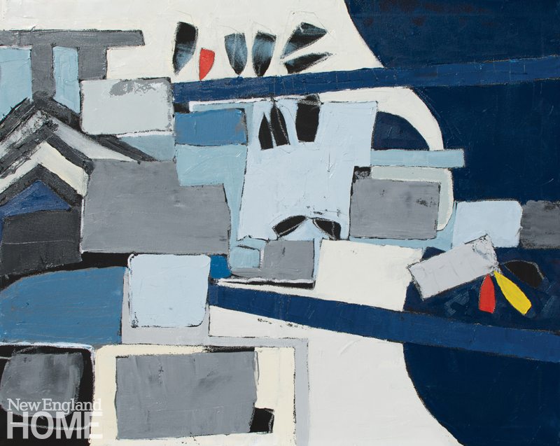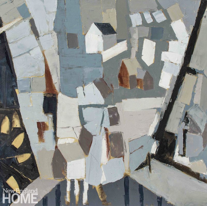 So Kelly absorbed. He explored the streets, views, buildings, docks, and beaches in Provincetown, looking for interesting angles and points of beauty to catch his interest. He would sketch a scene, then fill in the sketches with watercolor, and eventually transform the watercolor into oil on canvas. The more he painted, the less concerned he became with getting the exact shade of the house right or including details like windows and doors in a building. Over time, he tweaked his style to focus more on shadows, light, and composition, which works well with his Google Earth explorations. “Now, I’ll go right to a canvas without previously drawing and put it down as it comes,” Kelly says. “That’s very different from the way I started, when it was very measured. Now, you can see the shape of a building, but it’s not the most important thing. The thoughts are all there, and you can put it together, but I don’t feel like I’m responsible for showing something as it really is.”