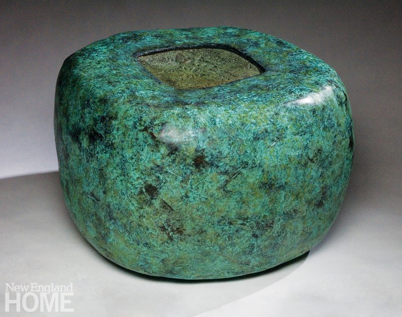 Mallory makes use of other materials, as well. When clients worried the vessels weren’t durable enough to live outdoors, she began casting the containers in bronze via lost-wax technique. She also uses unexpected, everyday materials like crumpled newspapers inside paper bags and upholstery foam remnants onto which she hand-applies rolled-out slabs of clay to help her asymmetrical Standing Stones stand and her breathy, comforting, cocoon-like Casings rise and take shape.