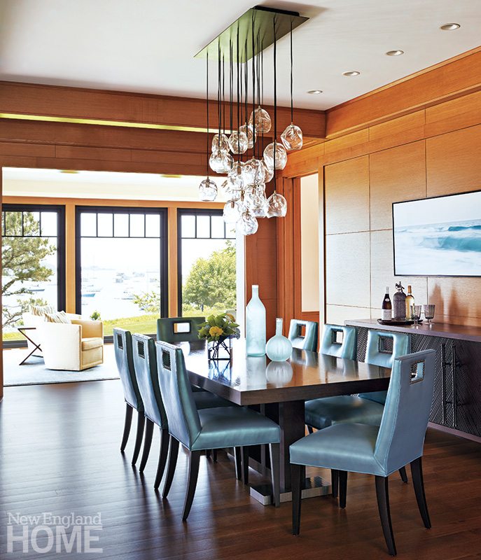 As anyone with a nest by the water will tell you, company is a given from Memorial Day to Columbus Day. But with several guest rooms, nine bathrooms, and an elaborate guest suite that includes living and dining rooms as well as two bedrooms, crowds are encouraged at this address. In summer, there’s almost always someone sunning on the terrace or splashing in the pool. The infinity edge, Solien points out, gives swimmers uninterrupted views at the harbor-facing end.