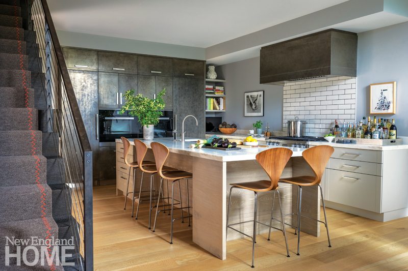 On the plus side, the units were blessed with dramatic floor-to-ceiling windows. On the minus side, two units meant a lot of duplication (such as two kitchens and two separate HVAC systems). Also in the minus column: an uninspired design. “It was a sheetrock box,” says Boston-based architect Josh Slater.