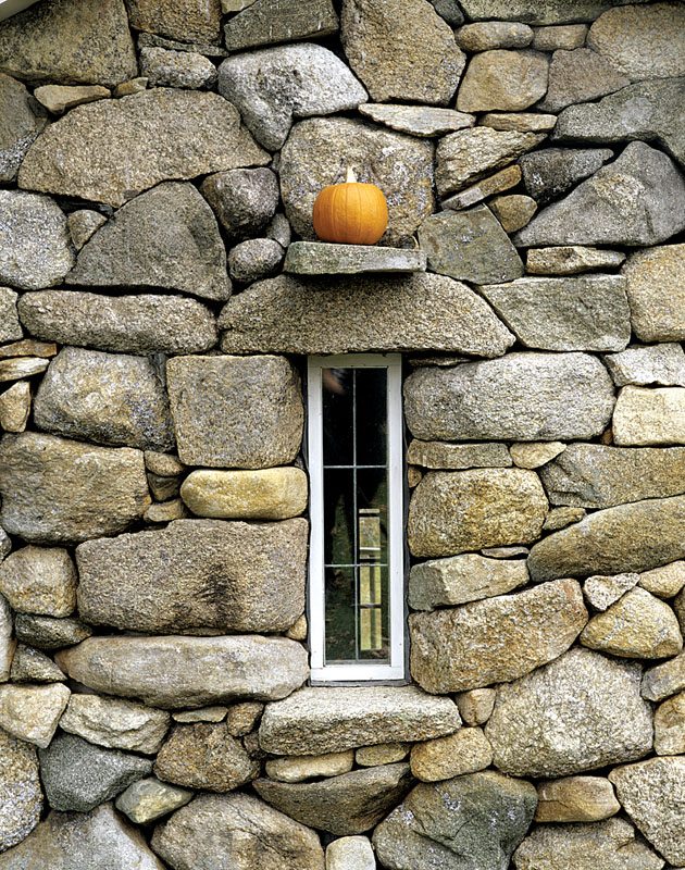 Lew French stands in front of a massive fireplace made of thousands of stones, some the size of a Mini Cooper, others no larger than a fingernail. The rocks are all local, and many were harvested on this very farm on Martha's Vineyard. They form a subtle tapestry of color—eggplant, gray, bronze, black and sulfur. Strands of driftwood embedded high on the fireplace look like arched eyebrows. A small, round, white rock sits in the top center. Asked its significance, French replies, ”Oh, I don't really know. I just liked the way it looked there.”