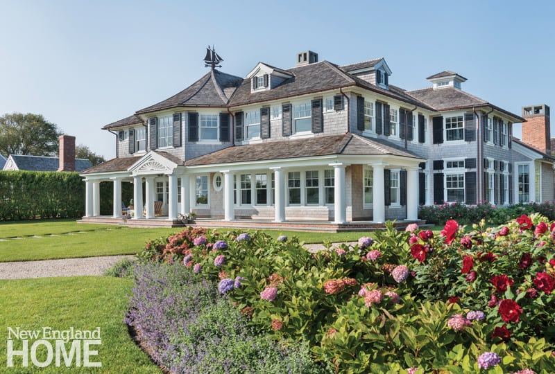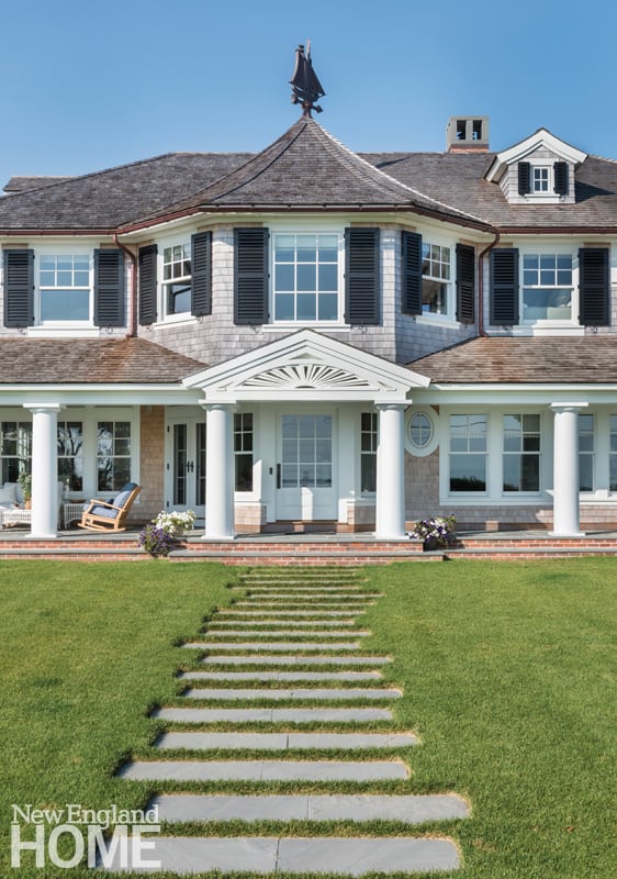 DaSilva describes the appearance as a “hunkered down stockiness,” appropriate both to the home’s prominent vantage point and its defiant stance against the frequent nor’easters that blow across the Cape. “The design makes a large house in a historically important location endearing through the use of scale shifts,” he explains. “Windows, columns, shingle coursing, the weathervane, and trim details are all robust—large in size, but not necessarily large in relation to the overall scale.”