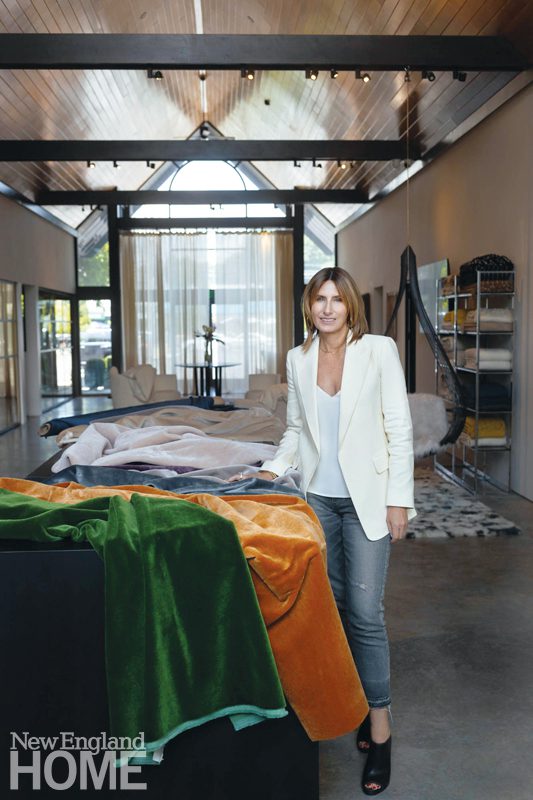 Plush textures cocoon Rosemary Hallgarten’s to-the-trade Norwalk showroom and headquarters in cozy luxury.
