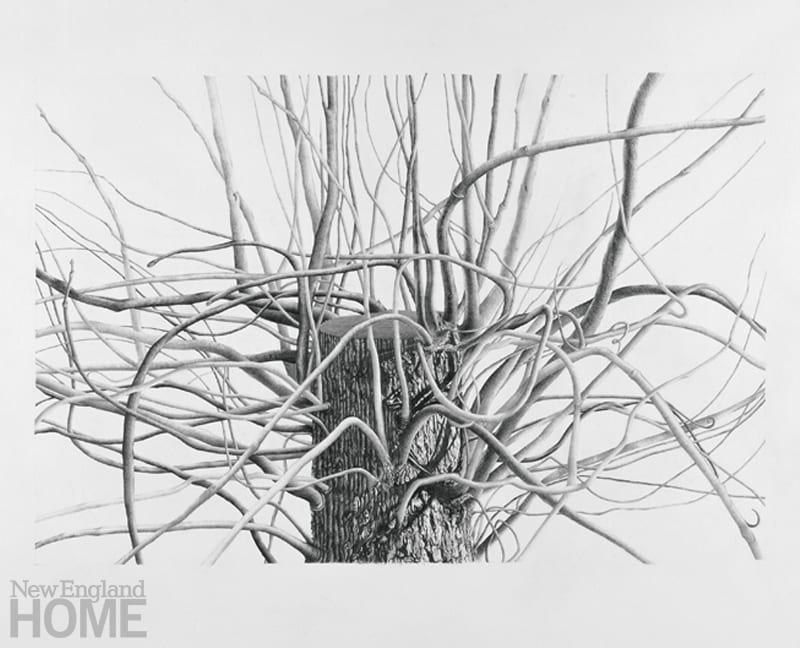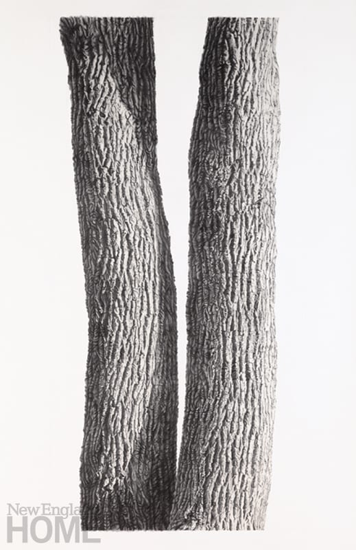 Why trees? “They are so grand, so old. They are the oldest living things on the planet, and they make us realize how small we are,” Allen says. “And there is such beauty in their imperfections. It’s fascinating to try to capture all of this in a drawing.” It helps that she lives near Hingham’s 251-acre World’s End, a Frederick Law Olmstead-designed park that is chockablock with stately trees.