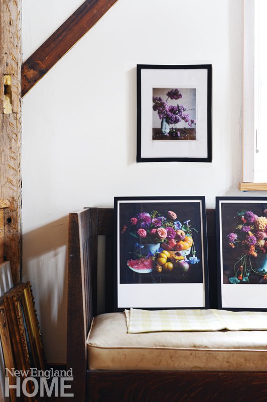 “I love the fleetingness of the flowers with the permanence of the ceramics,” says Palmer of the still-life compositions she creates and then photographs. The photos have a charm that recalls a masterful Dutch still-life painting.