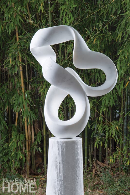 Erdman goes to Carrara six or seven times a year to hand-select marble from the quarries there for new pieces as well as to oversee his studio craftspeople for the “scaling up” process, where they transform his plaster models into much larger finished sculptures. “Every piece I do is a true collaboration,” he explains.