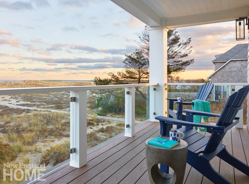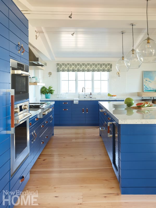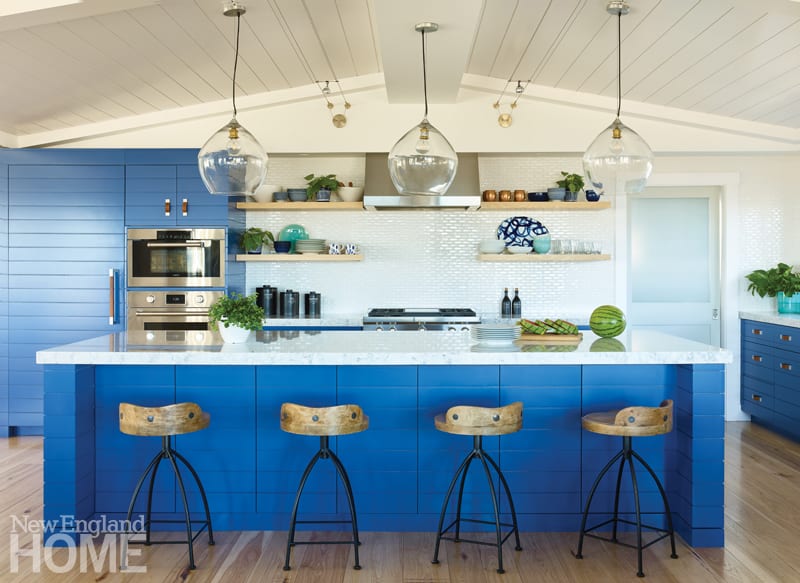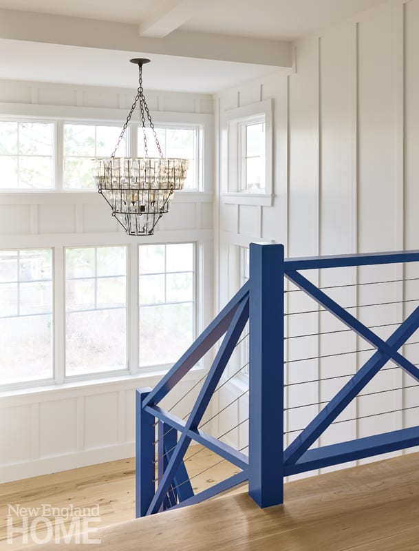 For a house with an elevator, it is perhaps ironic that a staircase would be the backbone of the interior design. But at Tracy Byers and Bill Hurtado’s residence on Seabrook Beach in New Hampshire, it’s a soulful blue balustrade that brings everything—and everyone—together.