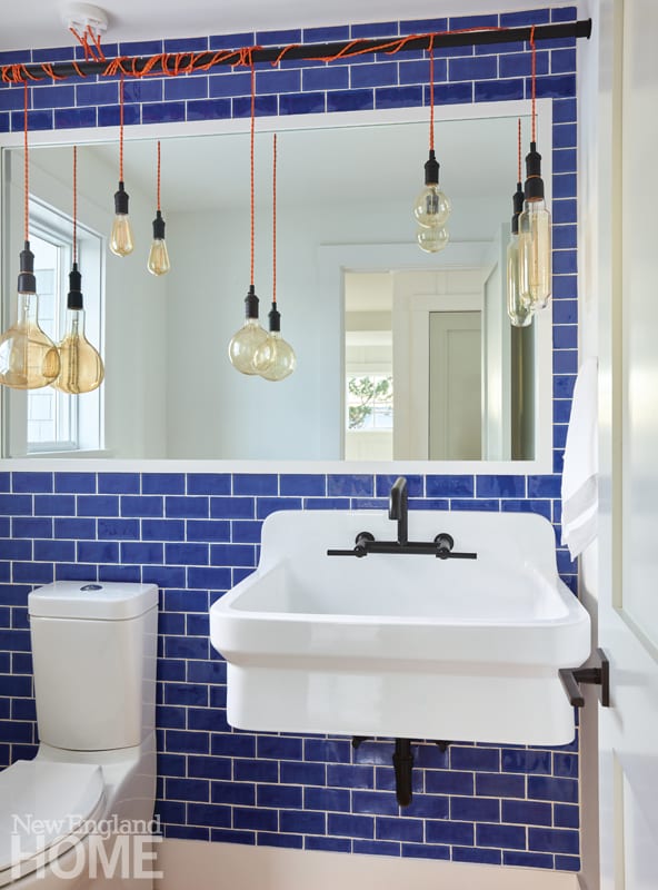 “I will never forget the discussion about the staircase,” laughs Byers. “I went out on a limb,” says Kristina Crestin, about pitching her idea for the stair, which features a geometric X-design and is painted an audacious blue. Byers was sold, but her husband was not. “He said, ‘No way—you guys are crazy!’ ” Byers recalls. “Now, he holds it up as the reason you should always trust Kristina,” Byers adds with a laugh.