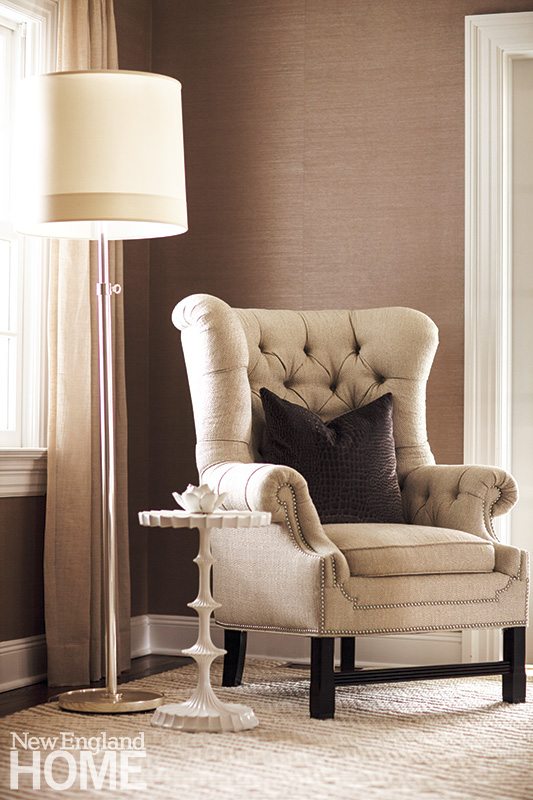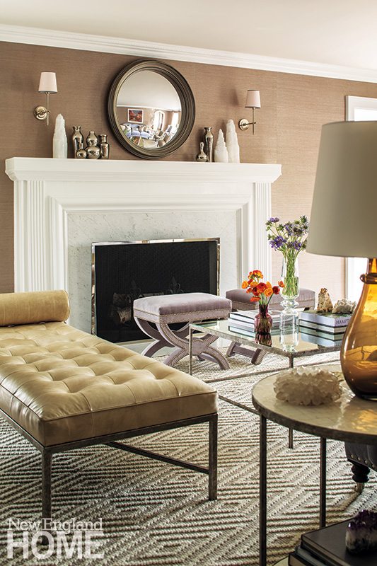 After yet another snowfall, you might expect that frigid temperatures and slippery roads would elicit pleas for palm trees and warm sand. That may be true for many Connecticut residents, but not for the family that lives in this 1920s New Canaan home. When the winter sun makes its horizontal pass through the sky, it pours through the windows and glints off walls covered in shimmering paper, matching the sparkle of the snow outside and infusing the house with warmth.