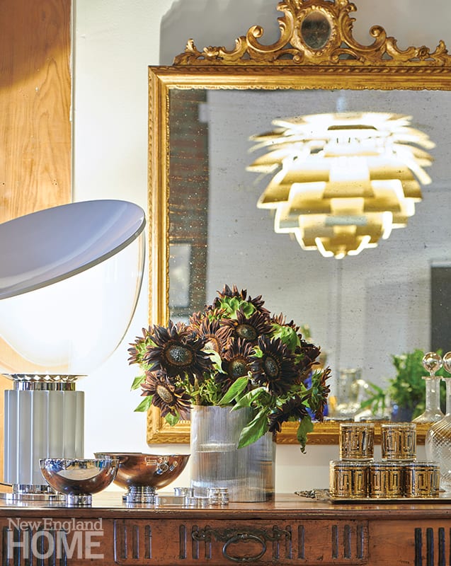 The expanded store is the latest evolution in Goss’s retail career. “I started my business by selling at a large antique mart, but my dream was always to have a shop of my own,” she says. Her secret weapon is her intuitive design sense. Goss effortlessly achieves the elusive “mix”—much talked about in design circles but often hard to achieve. In one setting, a contemporary Taccia by Flos lamp and ornate rococo mirror top an antique French buffet in an example of classic Goss.
