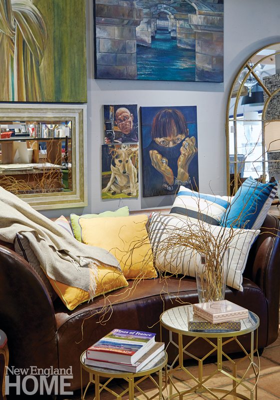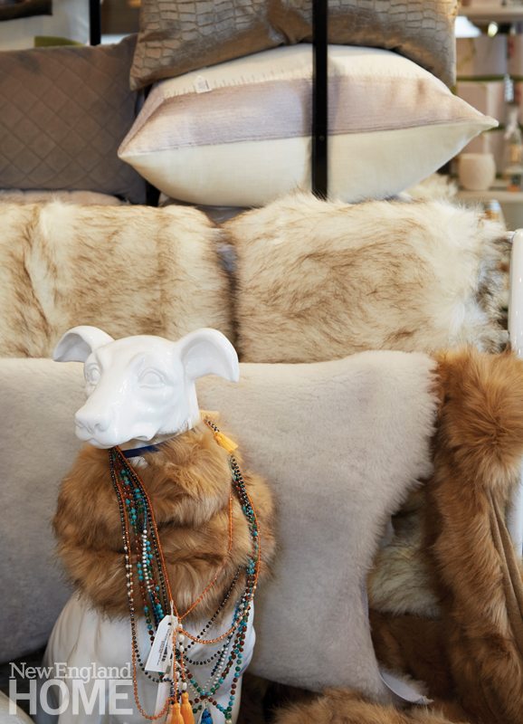 Connecticut’s trademark preppy style has morphed into eclectic peppy style, and Kirby and Company is a bellwether of contemporary Fairfield County decorating. This exuberant emporium specializes in accessories and house gifts—vintage table lamps, high-impact throw pillows, whimsical barware, and fanciful mirrors. “The final 10 percent of decorating is what turns a house into a home,” says owner Elaine Kirby McCleary, who was a tableware designer for Juliska before opening her shop in 2014. Many of her customers are first-time homeowners from New York City who’ve played it safe by decorating in a neutral palette of grays and whites. “We encourage people to add color,” she says, pointing out a tall case filled with piles of throws in the colors of Jordan almonds. She carries quirky items—gold elephant bookends, foo dog ceramic lamps—that will add unexpected frisson to a room. And she offers custom services like the re-caning and re-painting of your old furniture, and collaborates with Monogram Mary of Greenwich so you can have your initials emblazoned on linen cocktail napkins and guest towels. The coffee bar in the rear of the store offers a full assortment of espresso-based drinks and has a bakery case with ten different flavors of French macaroons. Customers can linger over a cappuccino or a piece of quiche at cafe tables on the sidewalk under a royal blue awning or inside at tables in the front windows. “I wanted my shop to be a hangout,” says McCleary.