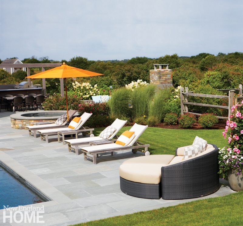 Indeed, stop by any afternoon and chances are there will be kids throwing a Frisbee on the lawn, swimmers in the pool, and something sizzling on the grill. With help from Nantucket Heritage Landscapes, the wife has ushered in a sumptuous array of island-suitable plants and flowers. Their myriad colors and shapes—the tall grasses billowing like waves in the wind—create an ideal frame for family gatherings now and for many sweet summers ahead. •