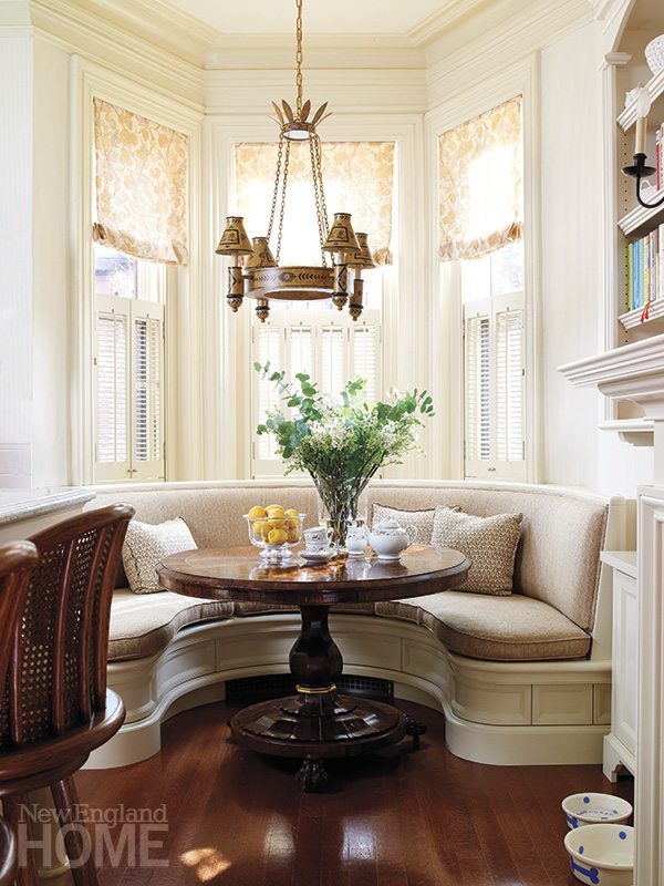 Karen Gilman, of the Peabody, Massachusetts, workroom Finelines, reminds us where all these trends come from. “They initiate in Paris at the fashion shows, then they trickle down to the public in all these different ways. Part of my job is to be the naysayer to so many things that are touted as trendy and new,” Gilman says, speaking from years of experience. “As living rooms continue to shrink and disappear and breakfast rooms continue to grow, we treat space according to how we live rather than in traditional ways. Curtains open and close less. People use automated shades for privacy; window treatments have become architectural elements rather than fussy decoration. We are doing a lot to hide hardware and to put draperies into pockets.” Gilman points out that few things look as dated today as a swag, bow, and jabot window treatment, while the wooden blind is becoming increasingly popular. “I can see that for us, right now, the biggest change is that everything is motorized,” she adds. “Everything that can move, does.”